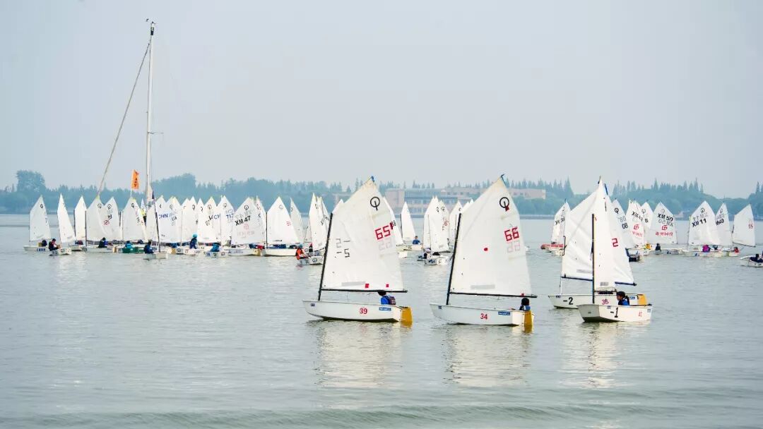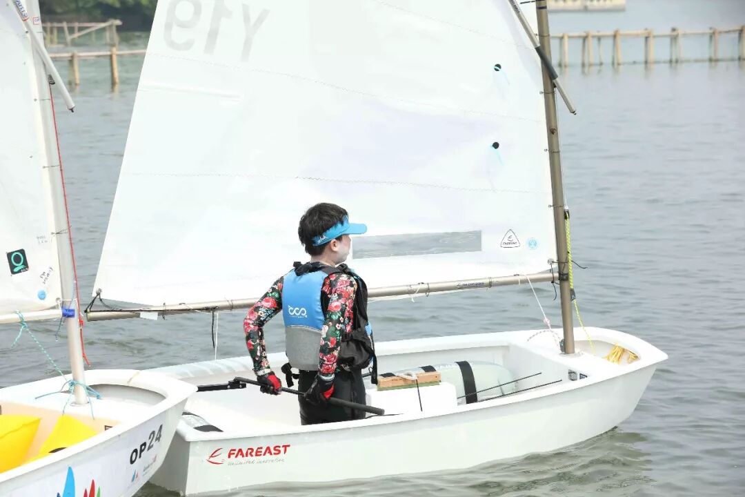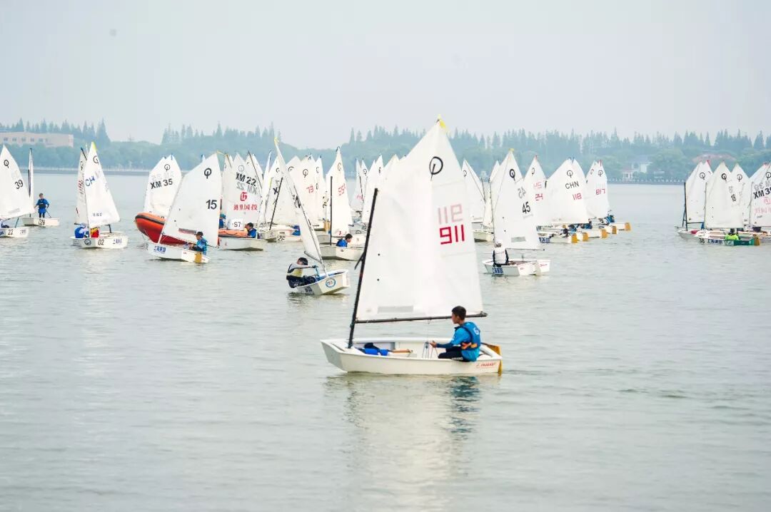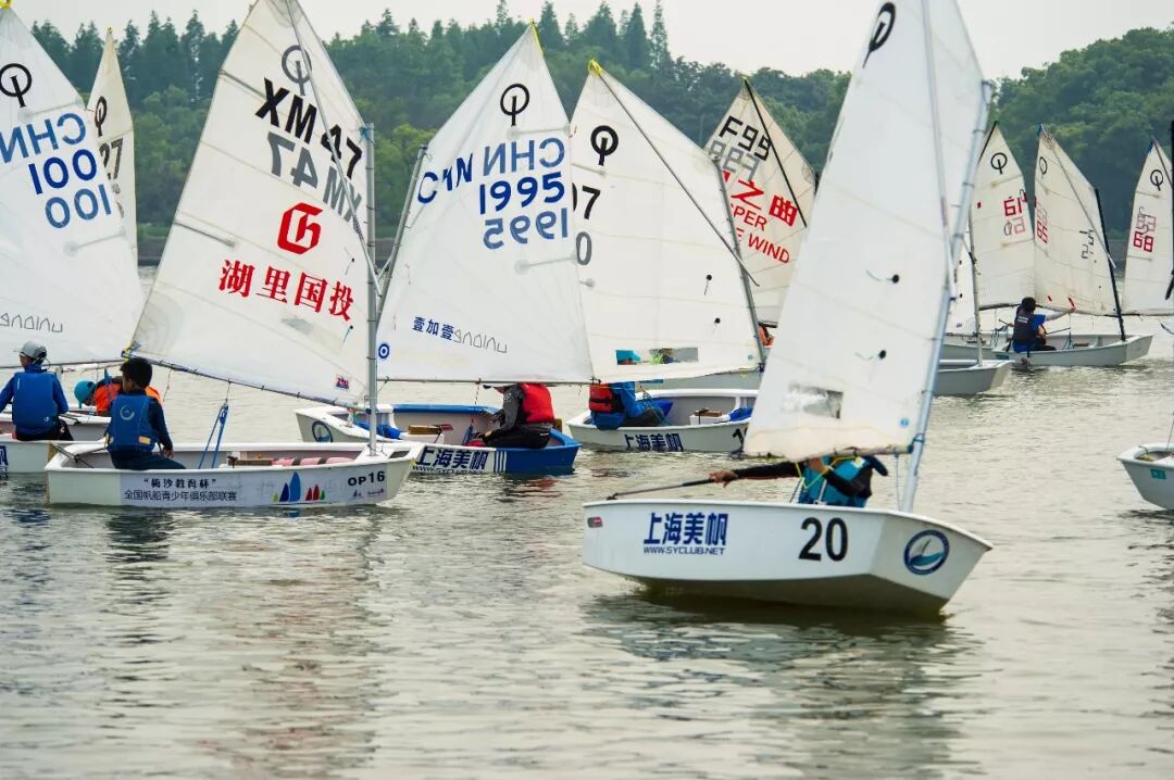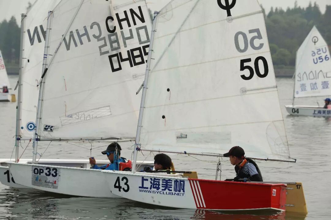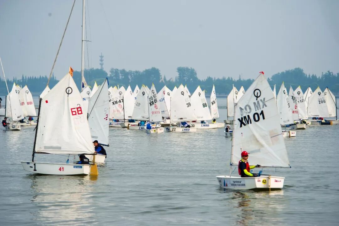 今天是“梅沙教育杯”第四届全国青少年帆船俱乐部联赛上海站的第二天,天气晴朗,户外最高温度为31度,风速2节左右,对参赛选手来讲,这样的天气非常考验他们的驾船技术,但这并未影响这群小小的逐风少年成为淀山湖上靓丽的风景线!