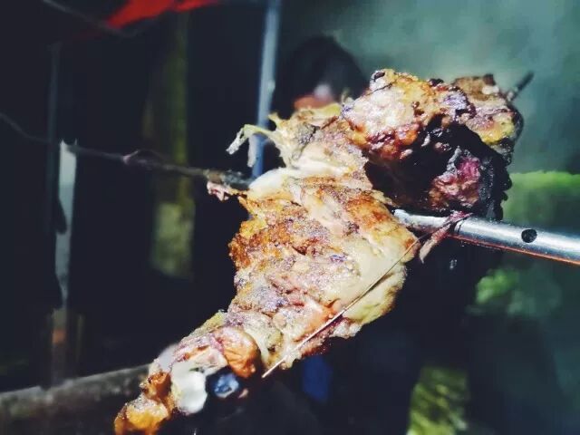 火光之上烤几个钟头,炭火哔哔啵啵轻声炸出一首歌,羊油滴滴答答应和着,孜然的香气丝丝绕绕地散发着,酒杯的碰撞声叮叮当当响着,,烤肉的香气四下放肆地游窜着……应和着上海国际帆船港的自然宁静,淀山湖上的点点帆影……