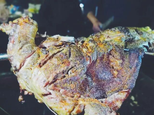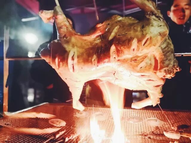 在孜然飘香的烟气里,口感酥脆,肥而不腻,辣而不辛,香而不膻的烤全羊就完成了